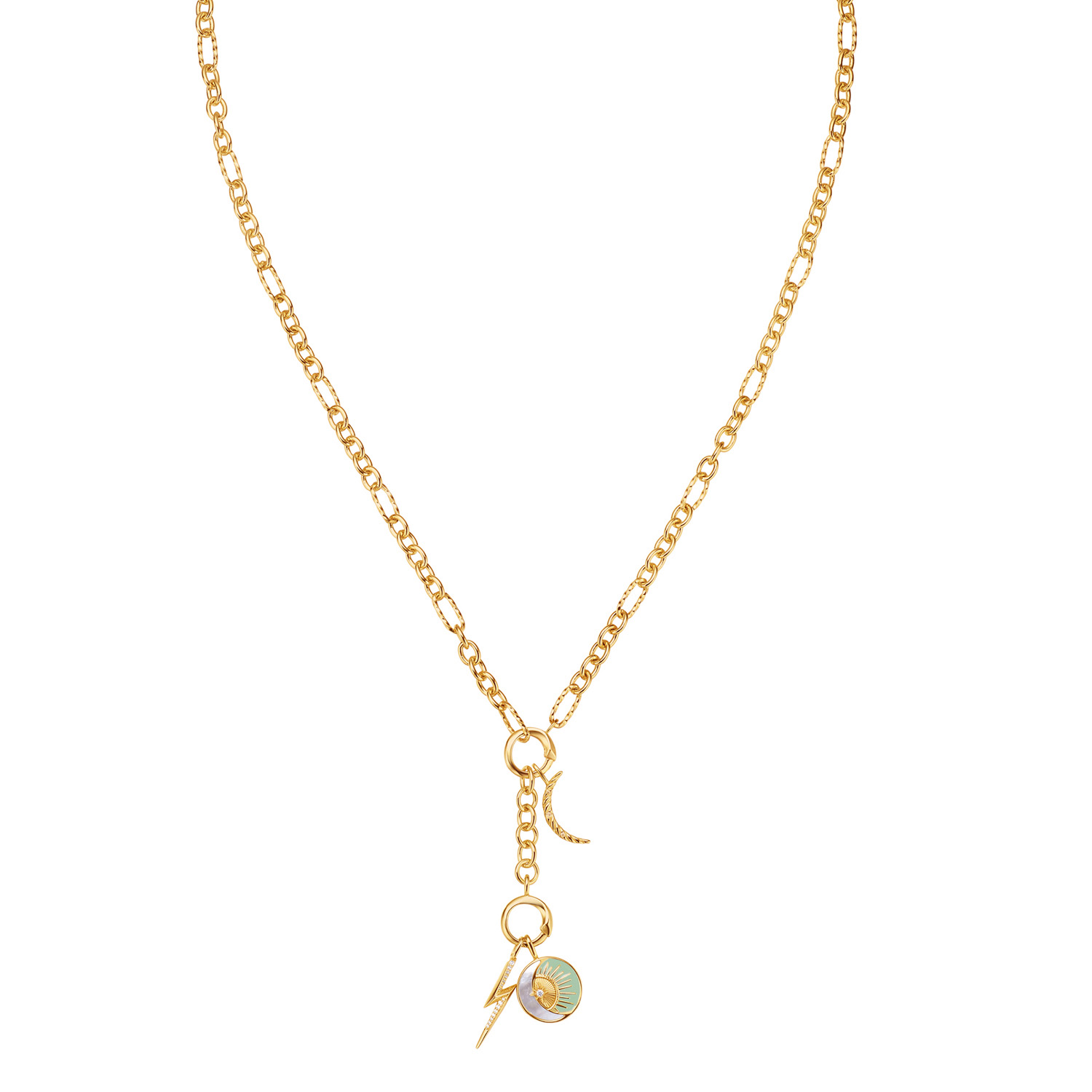 Geef je ketting een upgrade met deze elegante hemelse bedel, perfect wanneer je zin hebt in sprankeling. De maan bedel bevat sprankelende zirkonia stenen en is gemaakt van 925 sterling zilver met 14 karaat gouden plating. Bevestig je bedel eenvoudig aan een kettng, armband of connector.