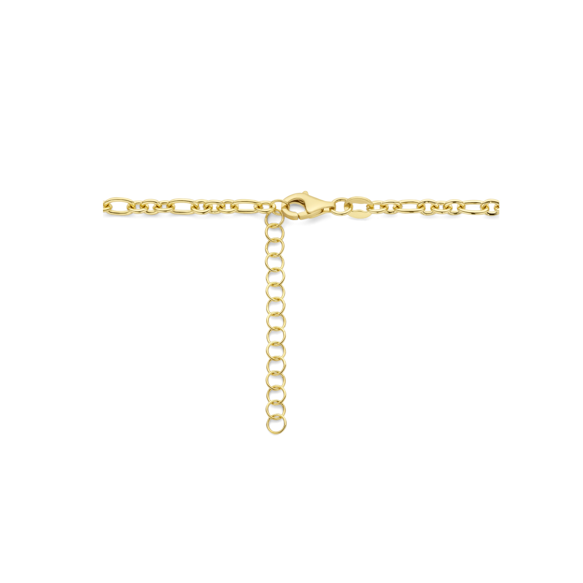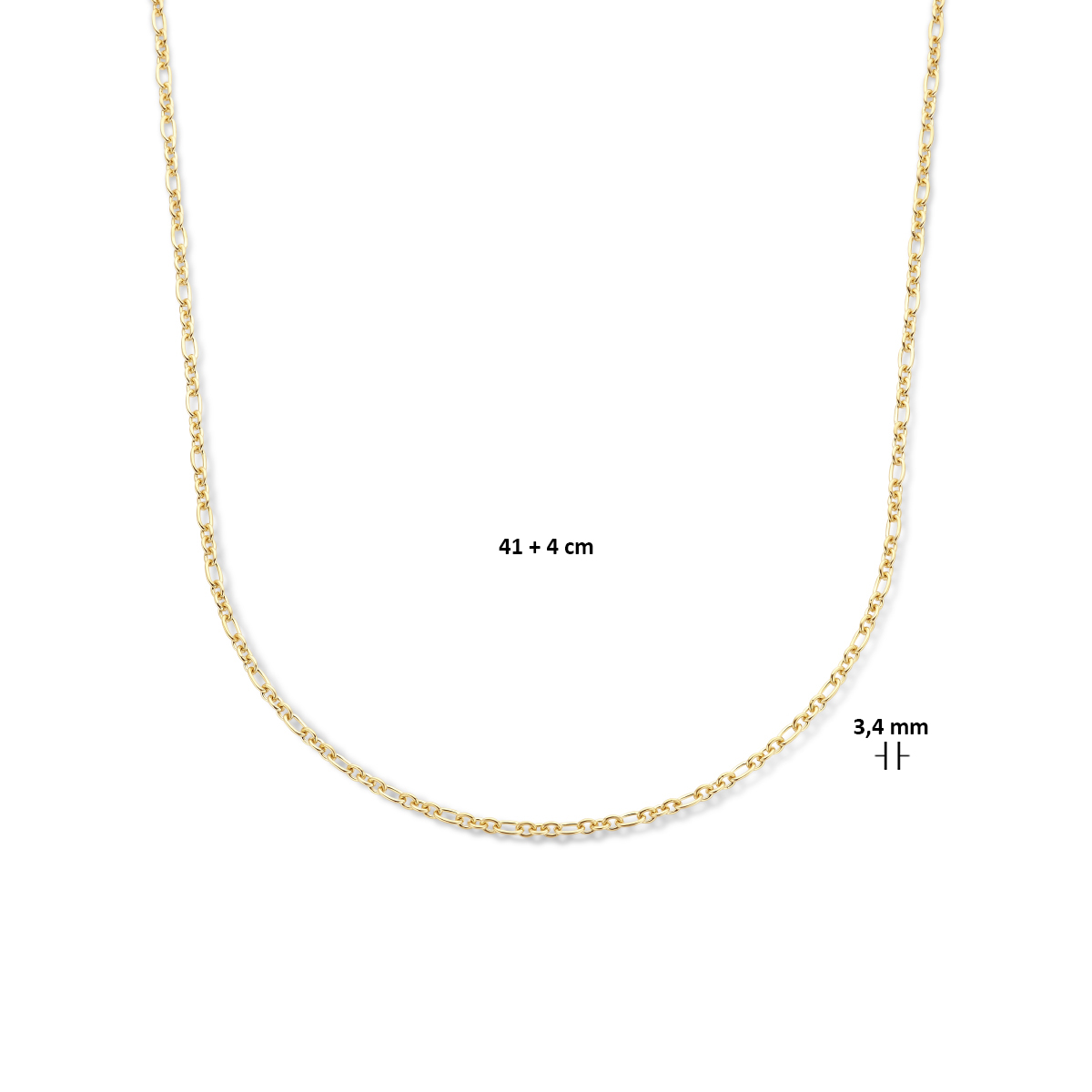 Geelgoud op 925 zilveren collier uitgevoerd met een karabijnsluiting. Het collier heeft een draaglengte van 41cm en een extensie van 4 cm. Geen garantie op plating.