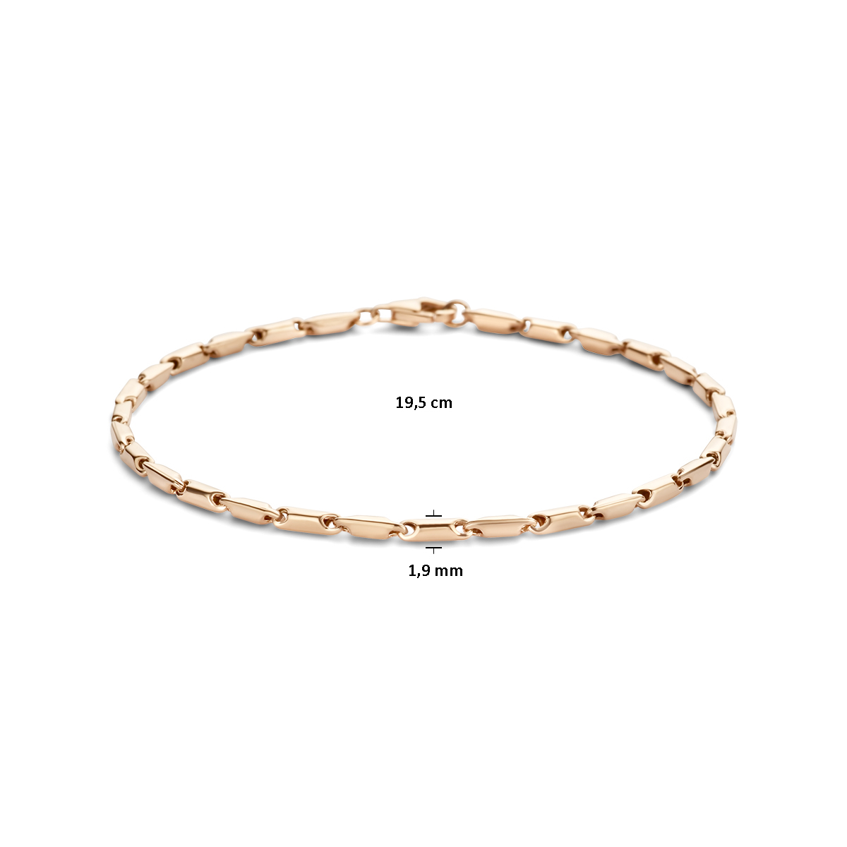 14k Rosegouden armband met een draaglengte van 19.5cm en een schakelbreedte van 1.9mm. Uitgevoerd met karabijnsluiting.