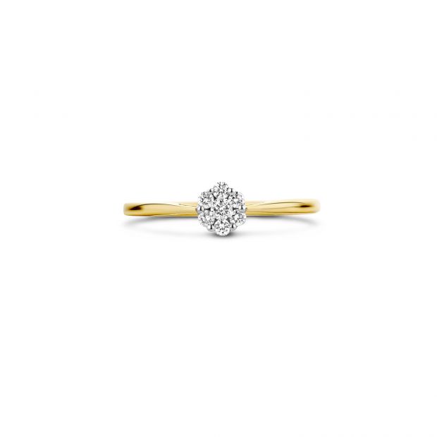 Blush Jewels worden met zorg, liefde en oog voor detail gemaakt van 14 karaat goud. Deze 14 karaat geel gouden Blush ring { 1611BDI } is uitgevoerd in glanzend gepolijst geel goud en voorzien van een briljant geslepen witte diamanten in rozet vorm met een diameter van 5,2 millimeter in witgouden zetting. Solitair gedragen zorgt de ring voor een elegant-vrouwelijke uitstraling. Voor een vrouwelijk-geraffineerd effect draag je deze 1,5 millimeter brede ring gecombineerd met meerdere Blush ringen, als aanschuifring.