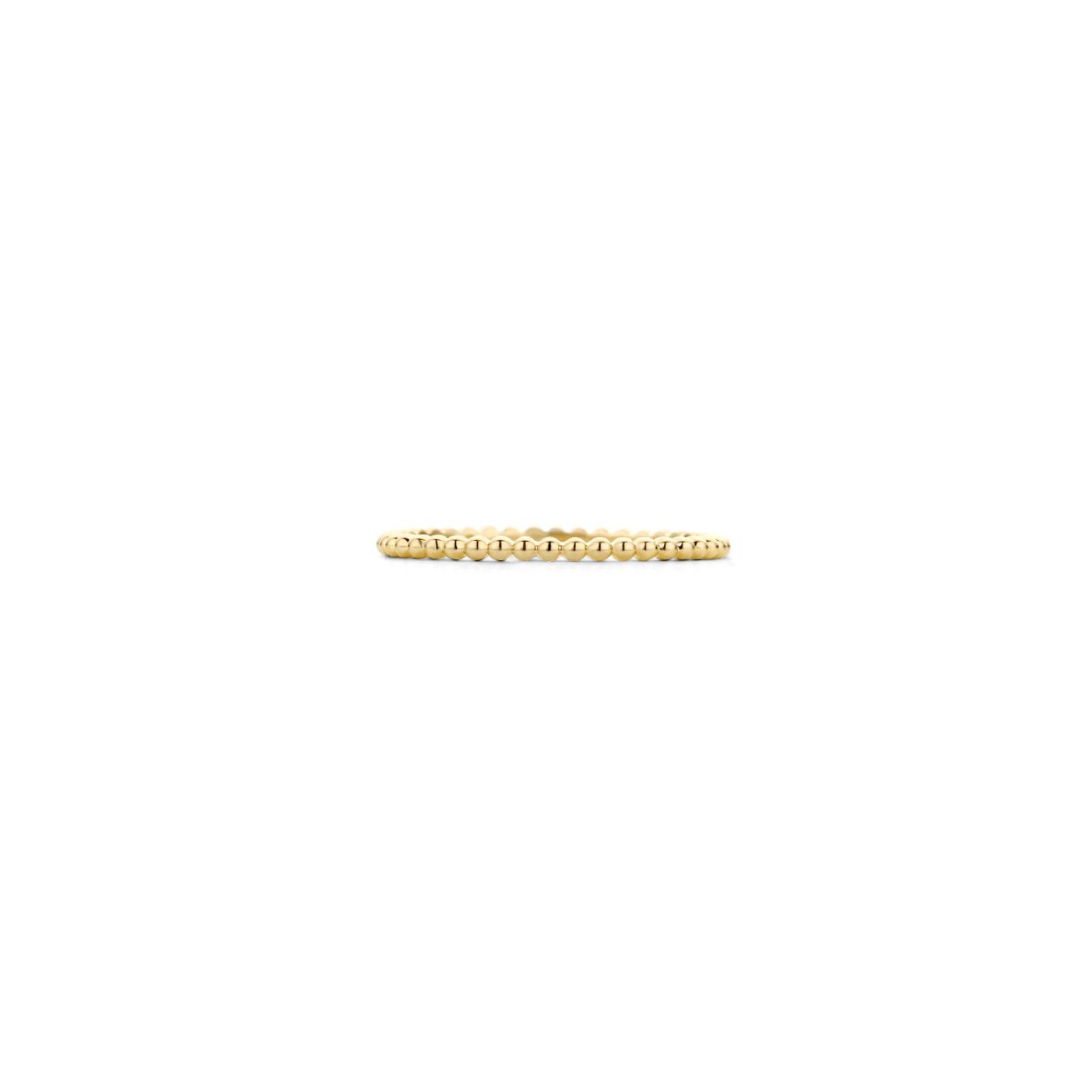 Deze 1,3 milimeter slanke geelgouden Blush ring  1195YGO  is gemaakt van glanzende 14 karaat gouden bolletjes. Draag deze ring met andere geelgouden ringen of combineer de Blush bolletjesring met rosegouden en een witgouden aanschuifring voor een bicolor of tricolor effect.