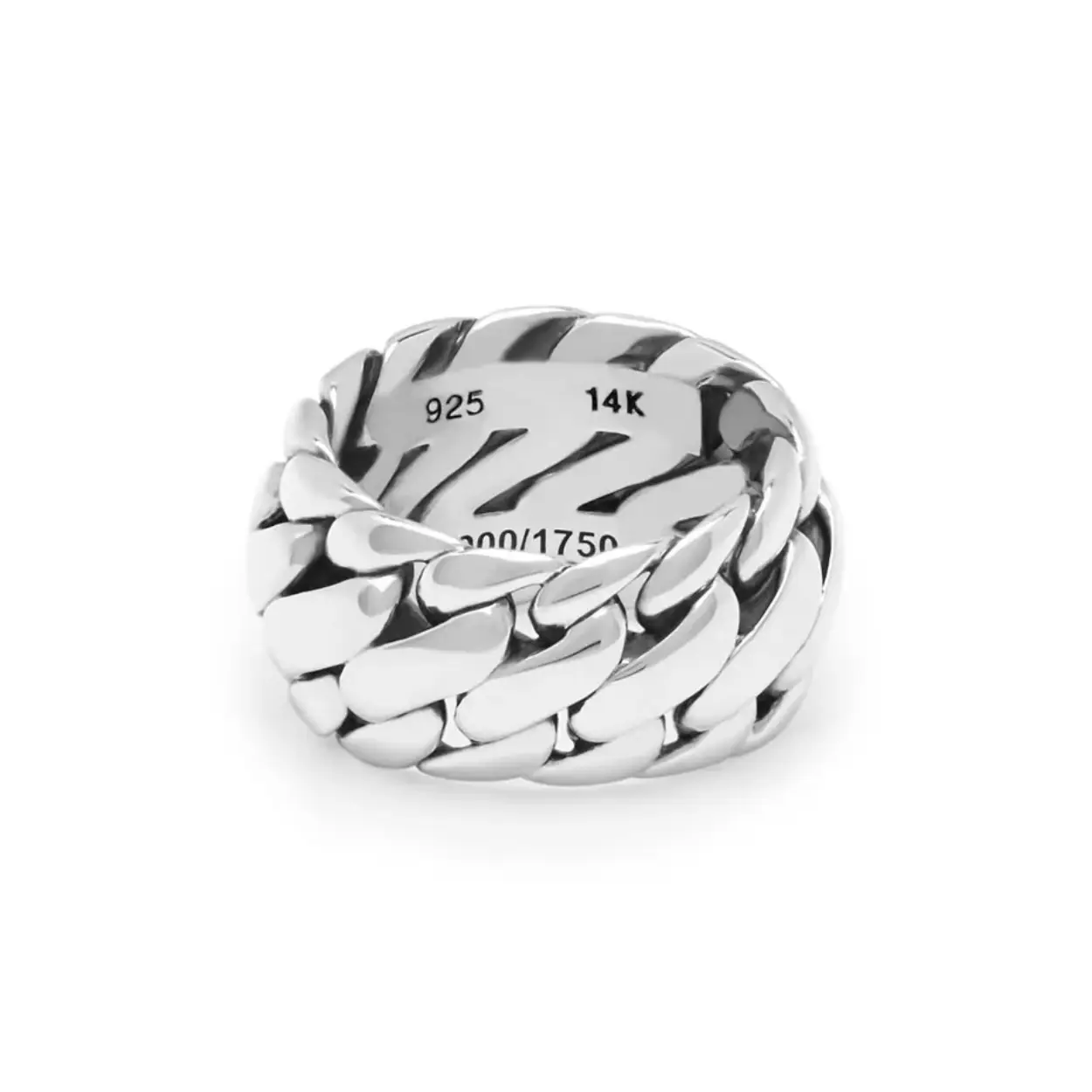 This Limited Ben Ring is new! This Ben link is an iconic family in the Heritage collection. Adding to the Ben family, Buddha to Buddha has also designed another special collection here. This Limited collection highlights this popular Ben link as the spacer is enlarged and stamped with a 14kt gold logo plate. A real eye-catcher!