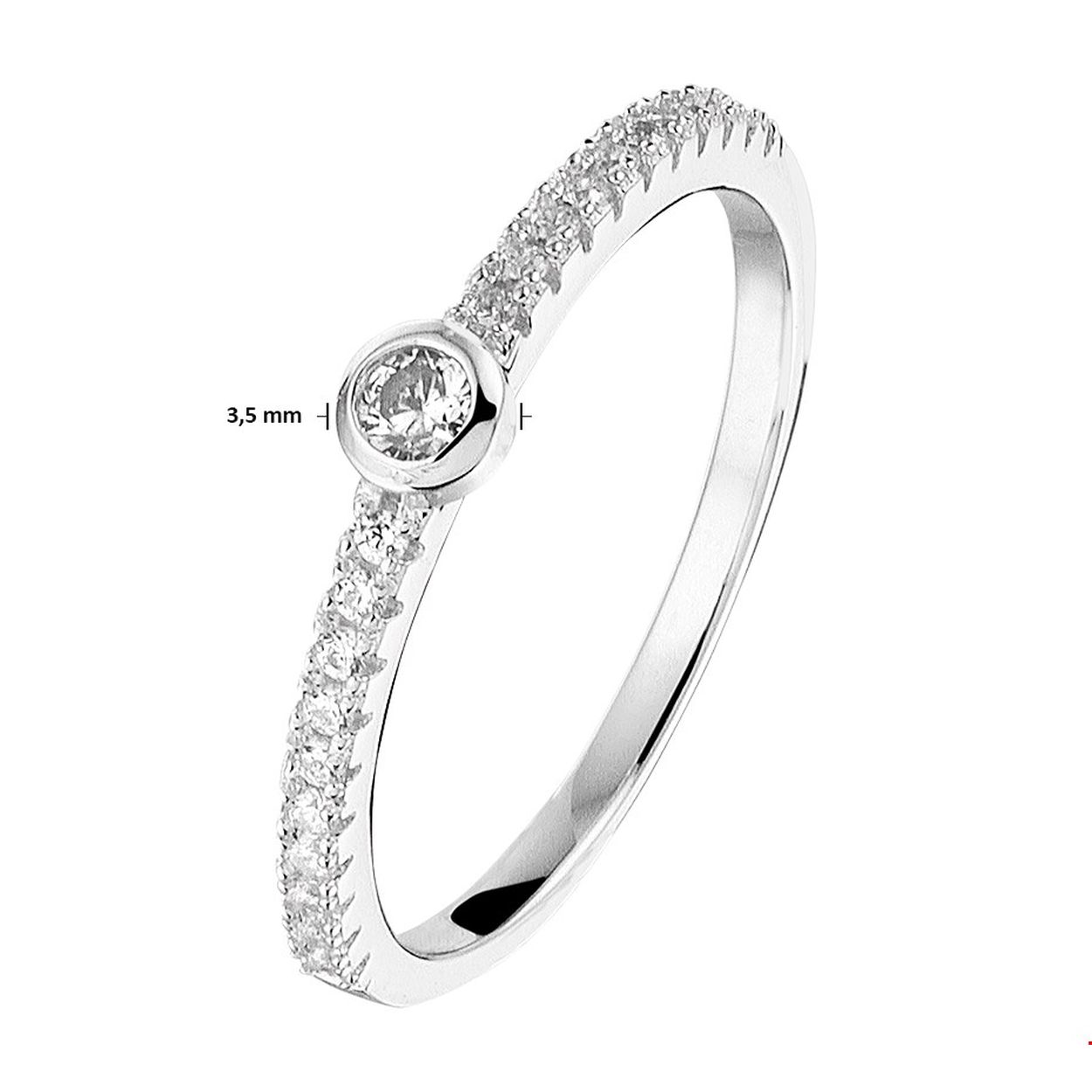 Gerhodineerd zilveren ring uitgevoerd met een zetkast en een rij met heldere zirkonia. Door de eenvoud en het verfijnde ontwerp kan deze ring perfect worden gedragen met andere sieraden.