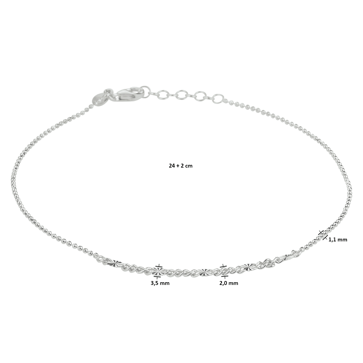Gerhodineerd 925 zilveren enkelbandje met een schakelbreedte van 3.5mm en een stevige karabijn sluiting. Het enkelbandje heeft een draaglengte van 24cm met een extensie van 2cm.