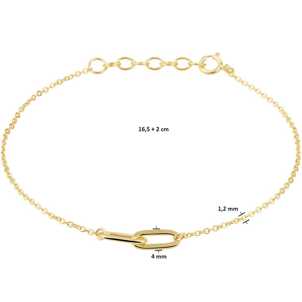 Geelgoud op 925 zilveren armband uitgevoerd met twee schakels. De armband heeft een draaglengte van 16.5cm met een extensie van 2cm. De schakels hebben een breedte van 4mm. Geen garantie op plating.