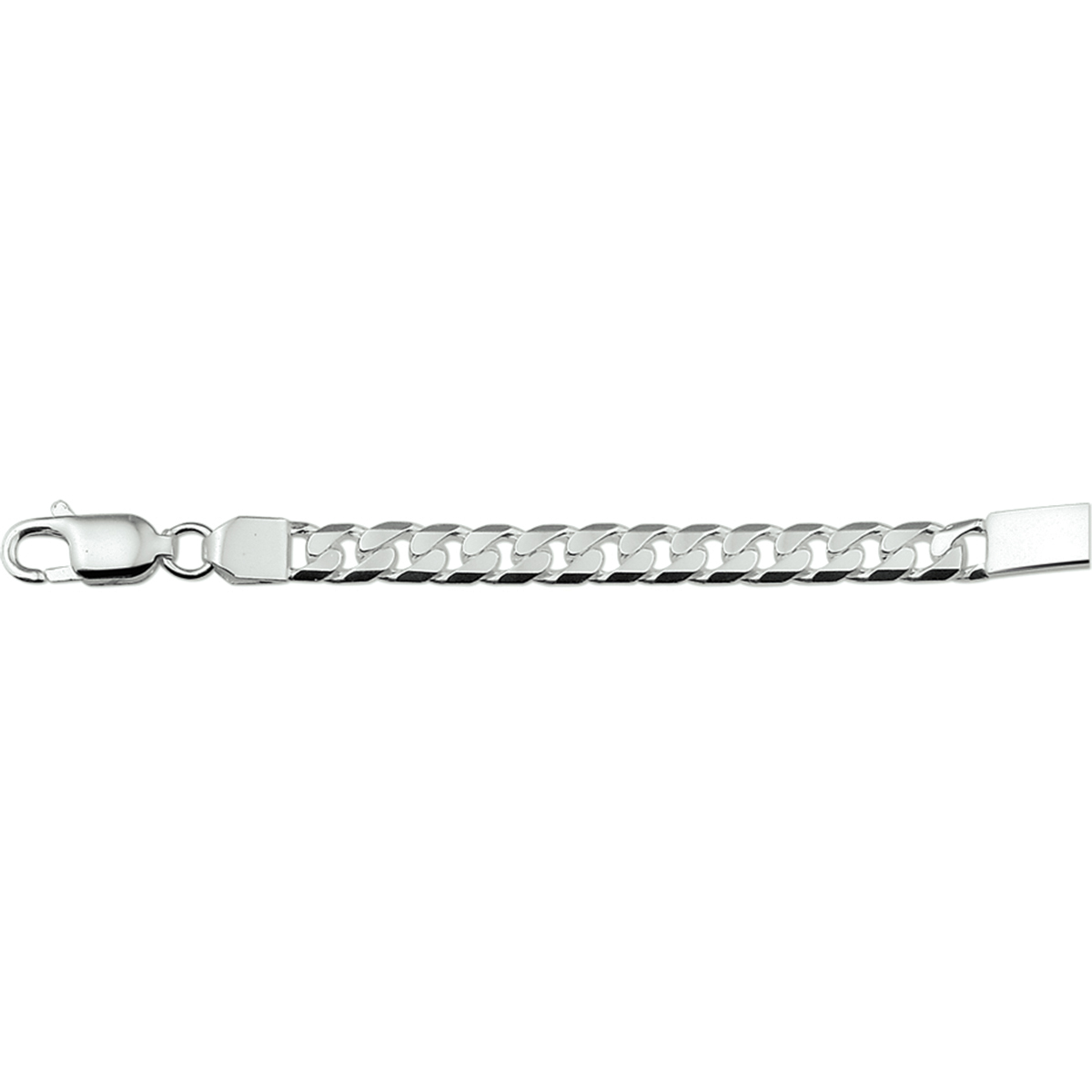 Beschrijving: Zilveren graveerarmband. De lengte bedraagt 19cm en de breedte van de graveerplaat bedraagt 6.3mm.