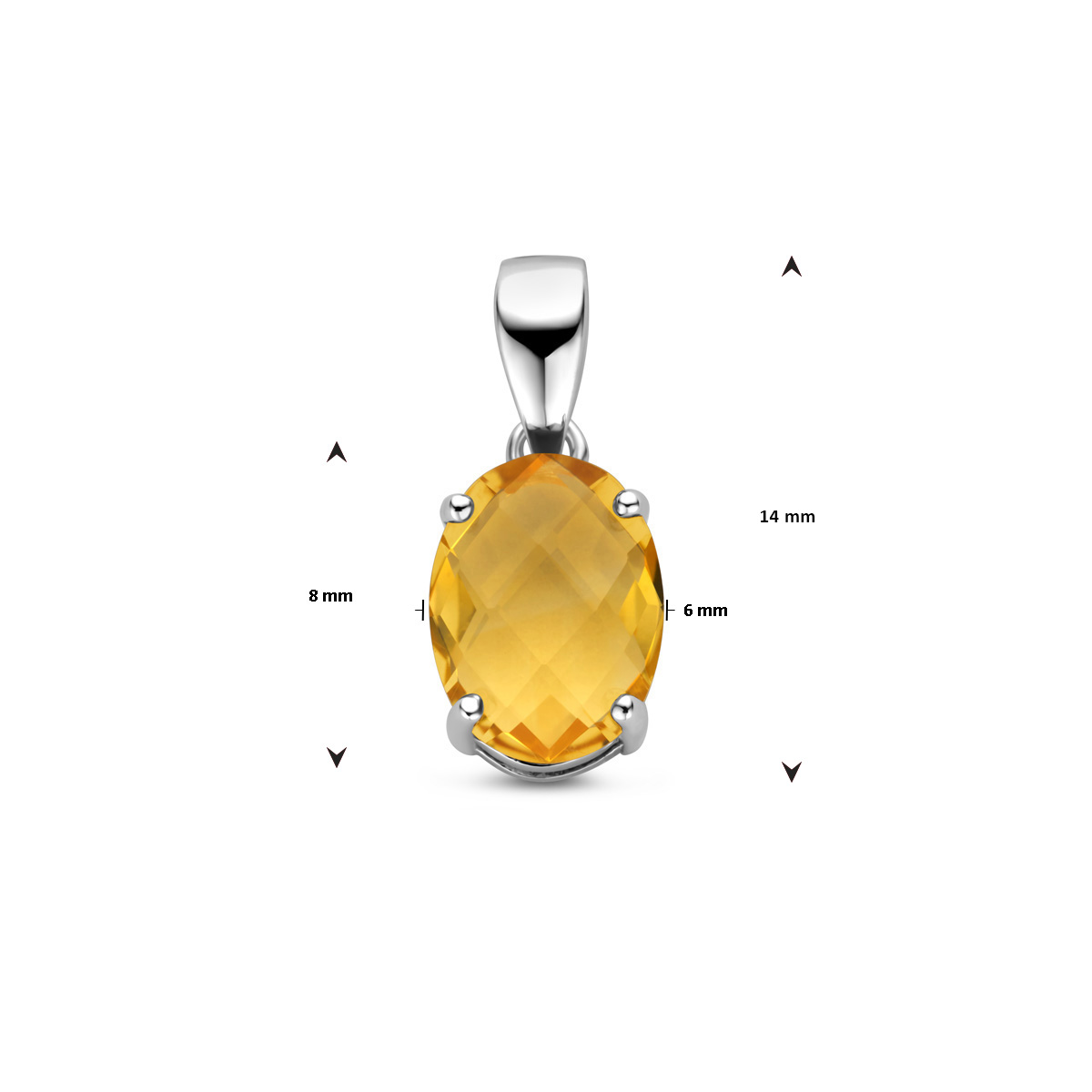 Gerhodineerd 925 zilveren hanger uitgevoerd met citrien. De steen heeft een afmeting van 8x6mm.