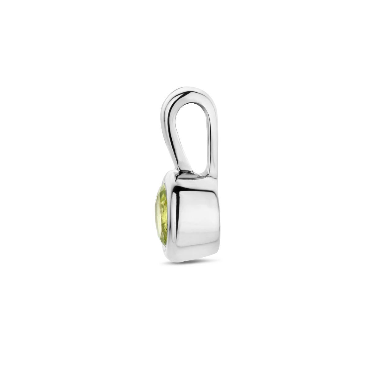 Gerhodineerd 925 geboortesteen zilveren hanger uitgevoerd met een schitterende peridot. De hanger heeft een afmeting van 11x5.5mm. De peridot heeft een steengewicht van 0.30ct.