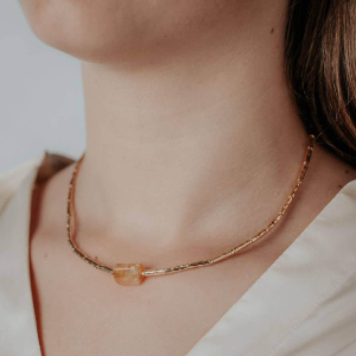 Collier Limited Edition gemaakt van Goldfilled buisjes in combinatie met de edelsteen Citrien. Citrien is een zonnige en verwarmende steen. Het versterkt je zelfvertrouwen en geeft energie, levensvreugde en moed. Lees alles over dez edelsteen via onderstaande button!