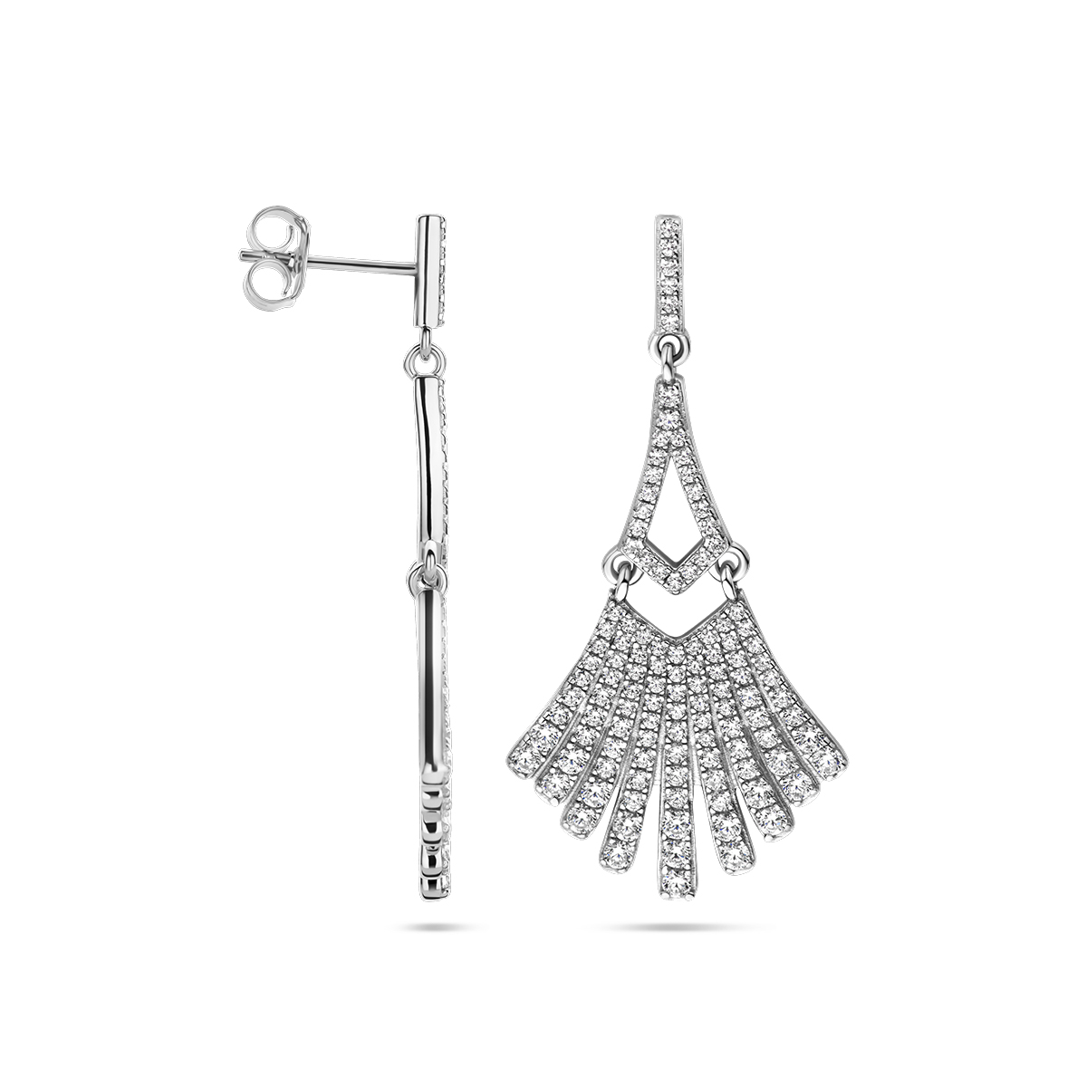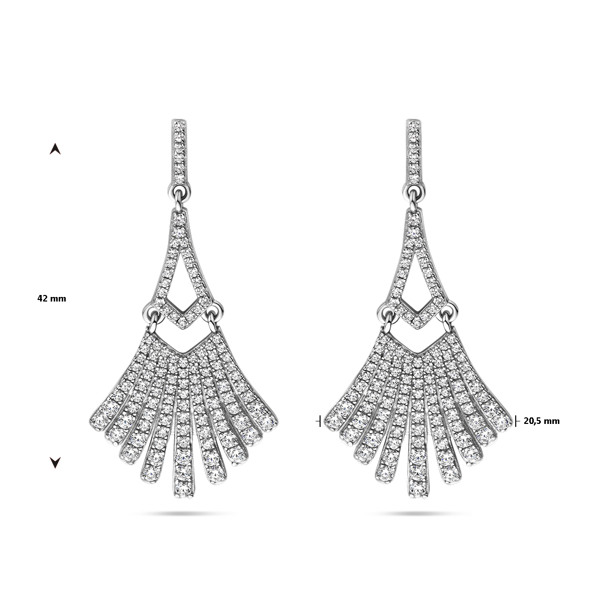 Gerhodineerd 925 zilveren oorhangers uitgevoerd met zirkonia. De oorhangers hebben een totale hoogte van 42mm.