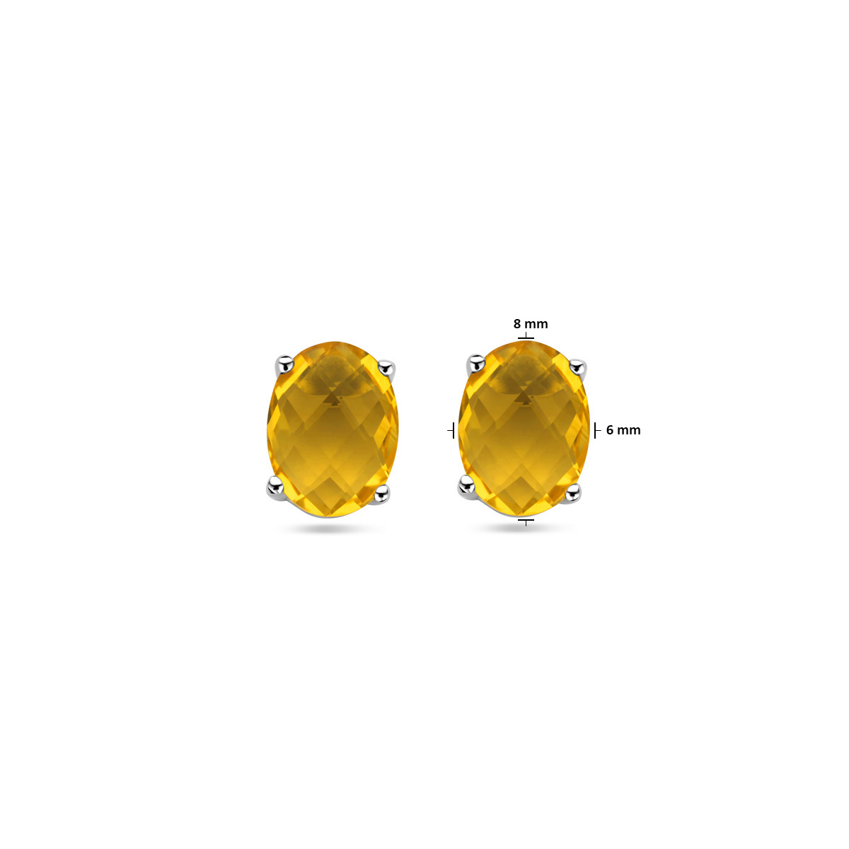 Gerhodineerd 925 zilveren oorknoppen uitgevoerd met citrien. De steen heeft een afmeting van 8x6mm.