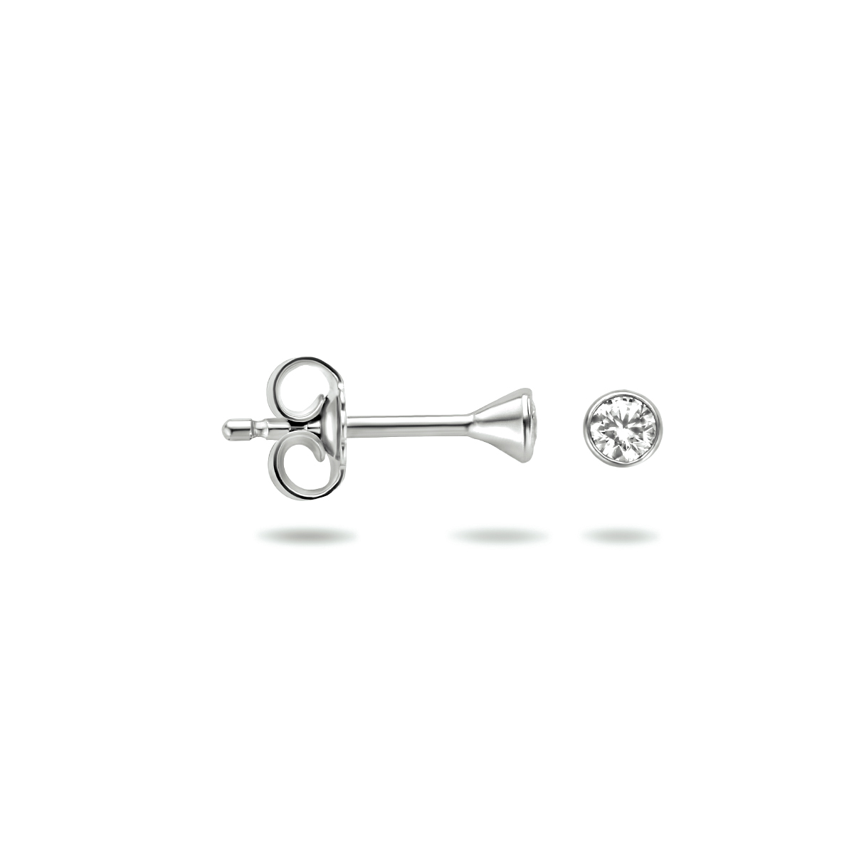 Beschrijving: Gerhodineerd zilveren oorknoppen met zirkonia.