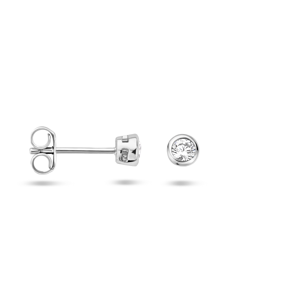 Beschrijving: Gerhodineerd zilveren oorknoppen met zirkonia.