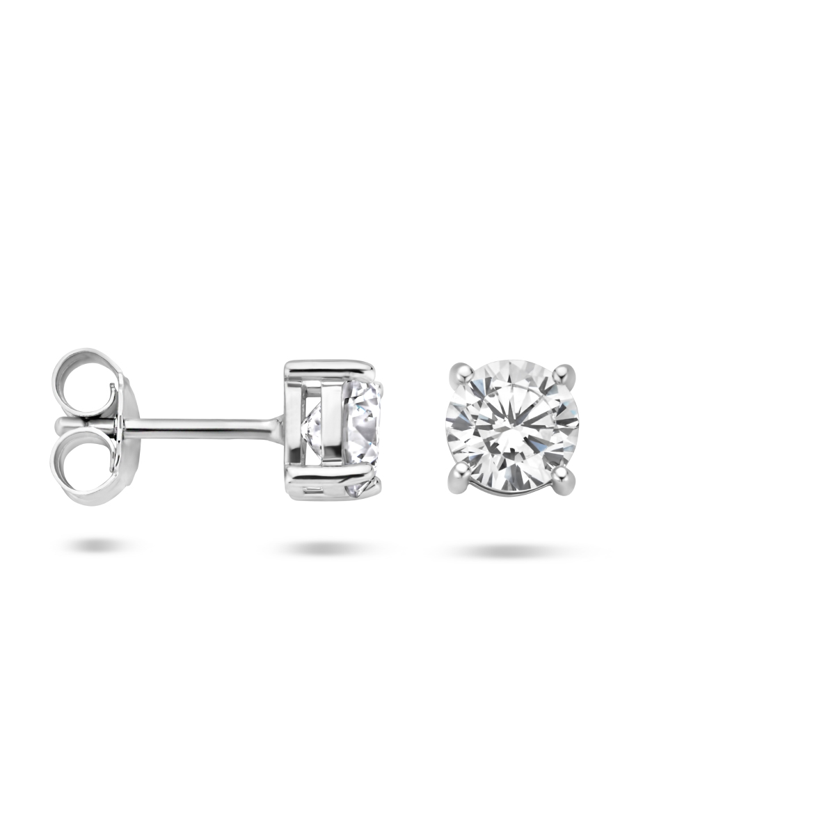 Beschrijving: Gerhodineerd zilveren oorknoppen met zirkonia.