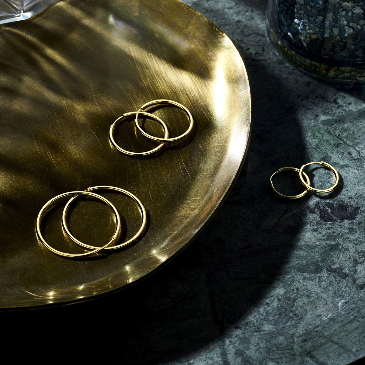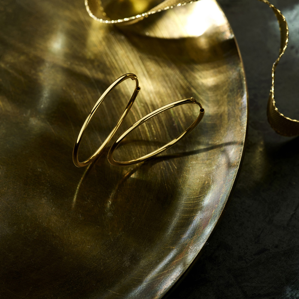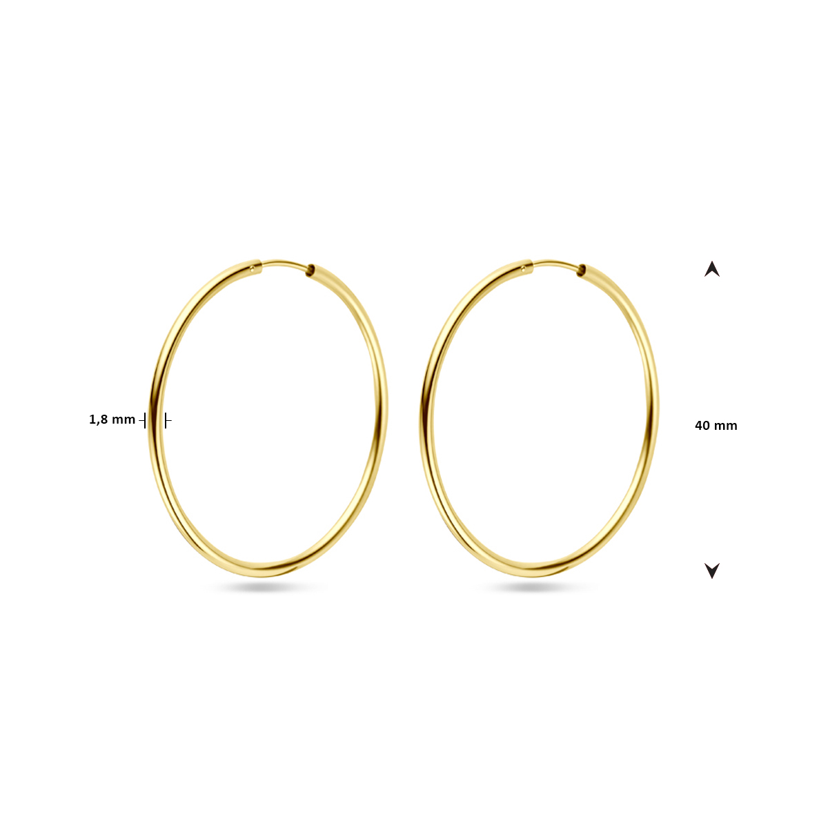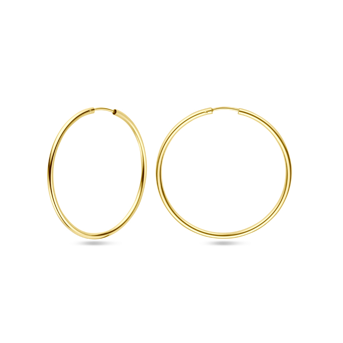Beschrijving: Geelgouden creolen met een ronde buis en een scharnier-sluiting.