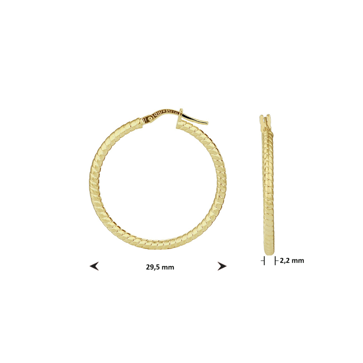 14k Geelgouden oorringen met een 925 zilveren kern. De oorringen hebben een diameter van 29.5mm en een dikte van 2.2mm.