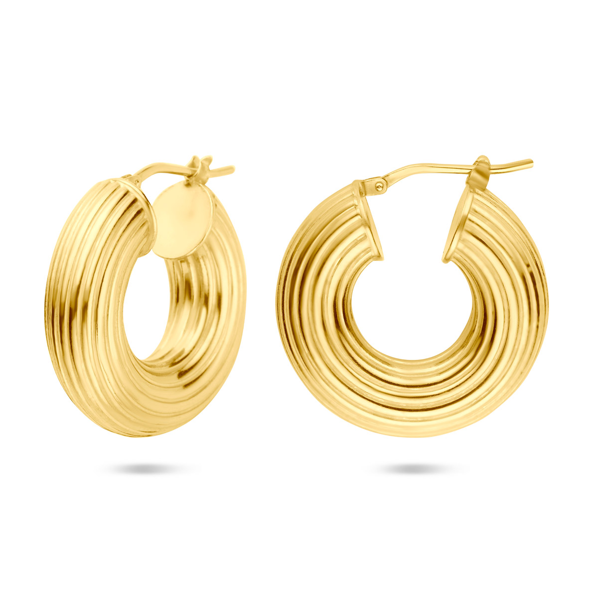 Geelgoud op 925 zilveren oorringen met een afmeting van 26x8mm. Geen garantie op de plating.