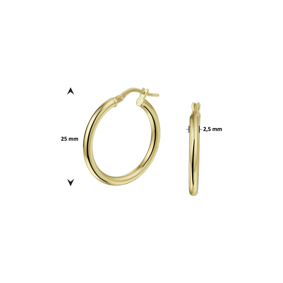 14k Geelgouden oorringen met 925 zilveren kern uitgevoerd met een stevige scharnier sluiting. De oorringen hebben een diameter van 25mm.
