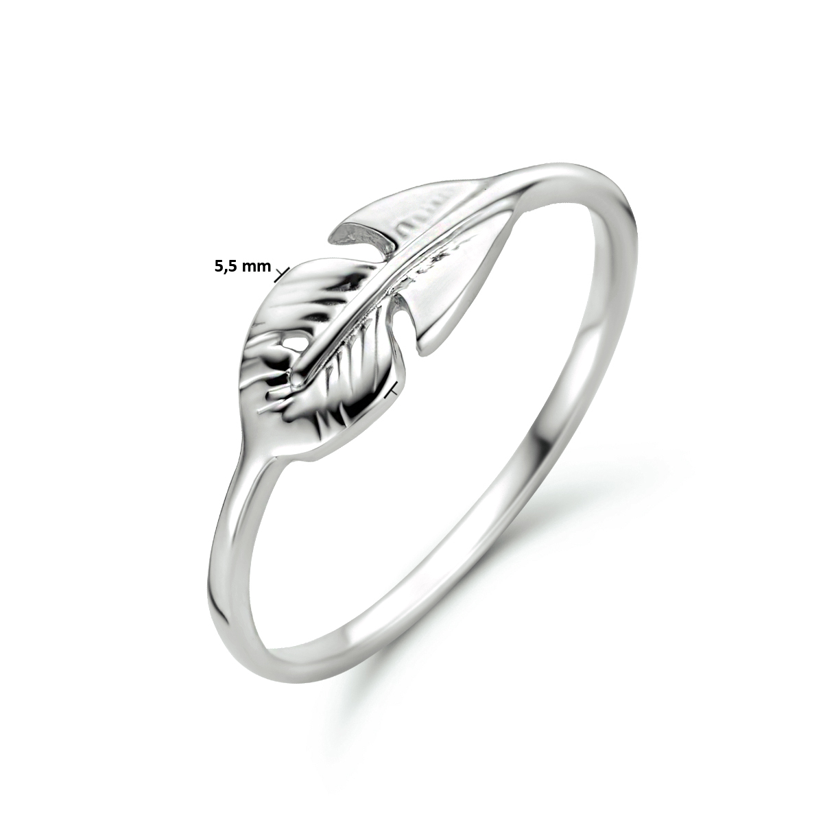 Gerhodineerd 925 zilveren ring uitgevoerd met een blad. De ring heeft een breedte van 5.5mm.