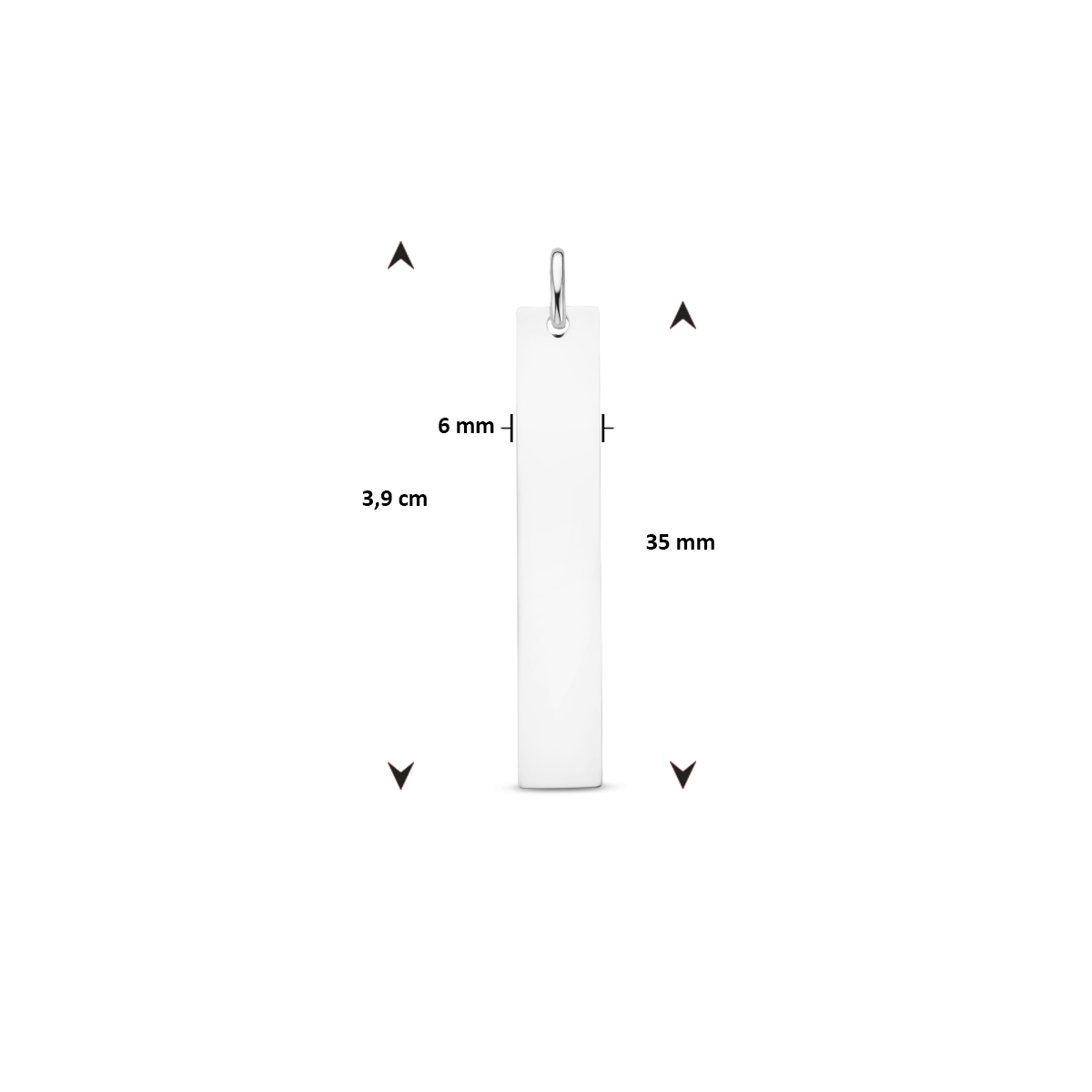 14k Witgouden hanger met een totale hoogte van 3.9cm. De rechthoek heeft een afmeting van 35x6mm.